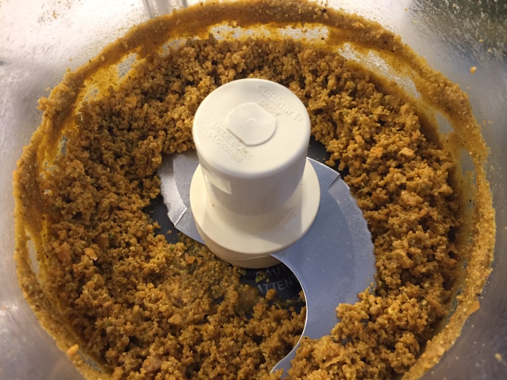Grind/crush/crumble pistachios and crackers until desired texture and mix them.