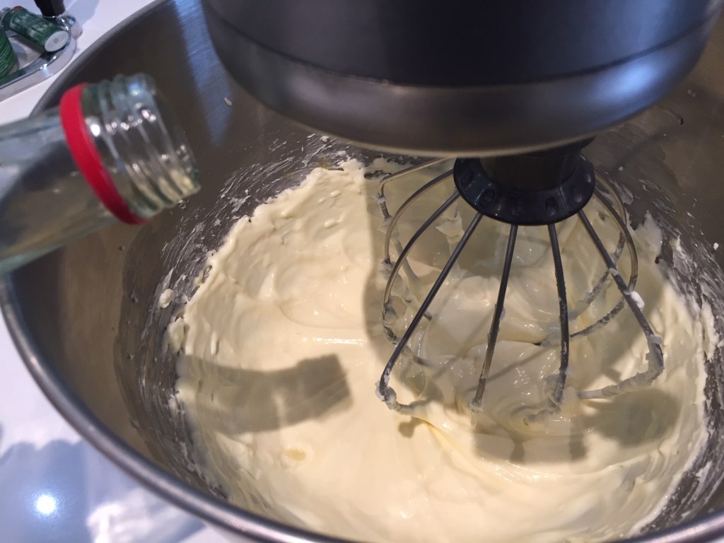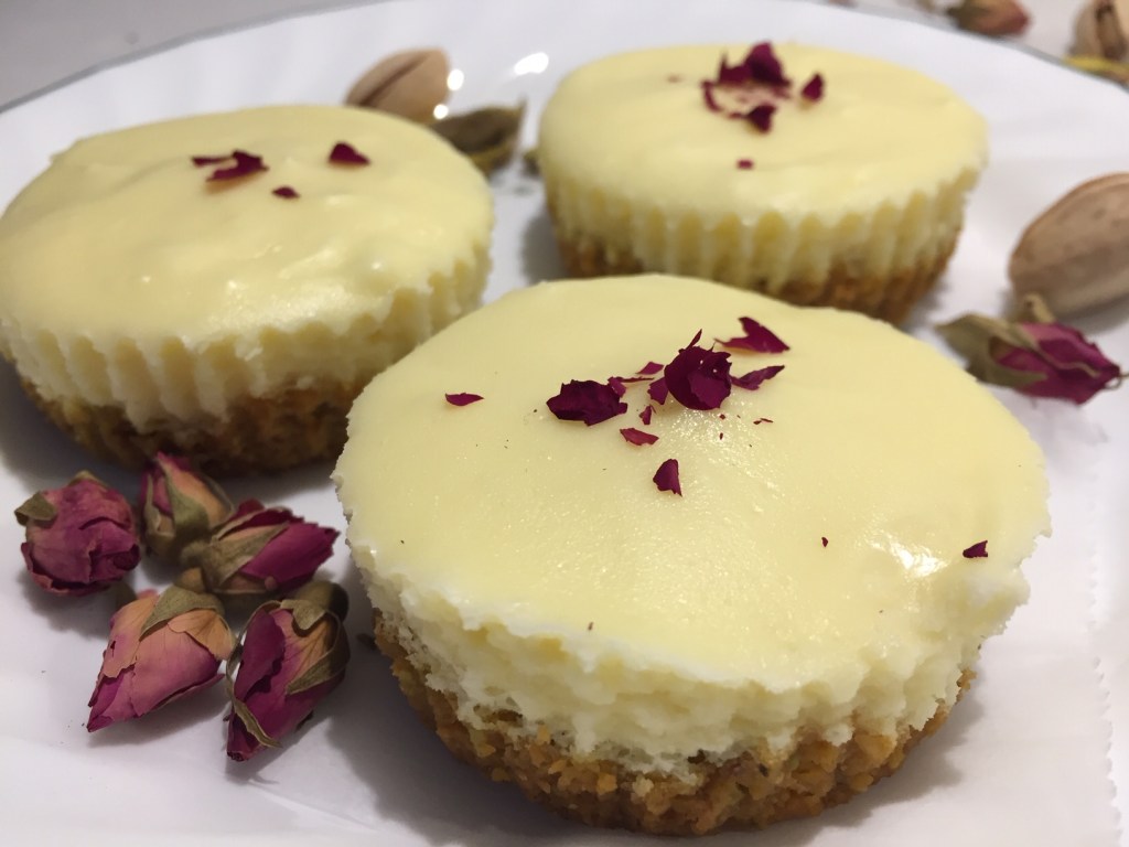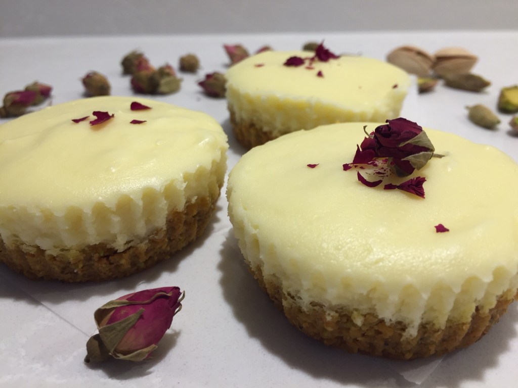 Cream together cream cheese and sugar. Mix in rosewater and egg. Fill the cupcake tins.