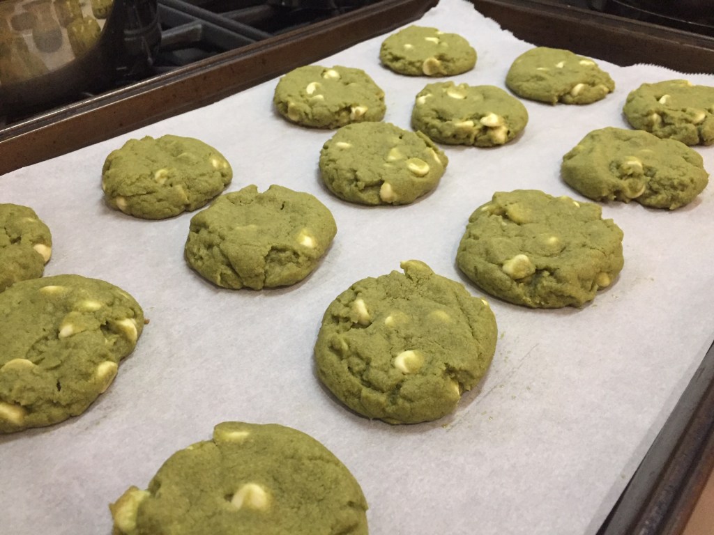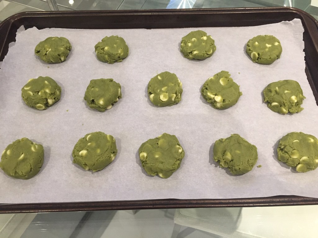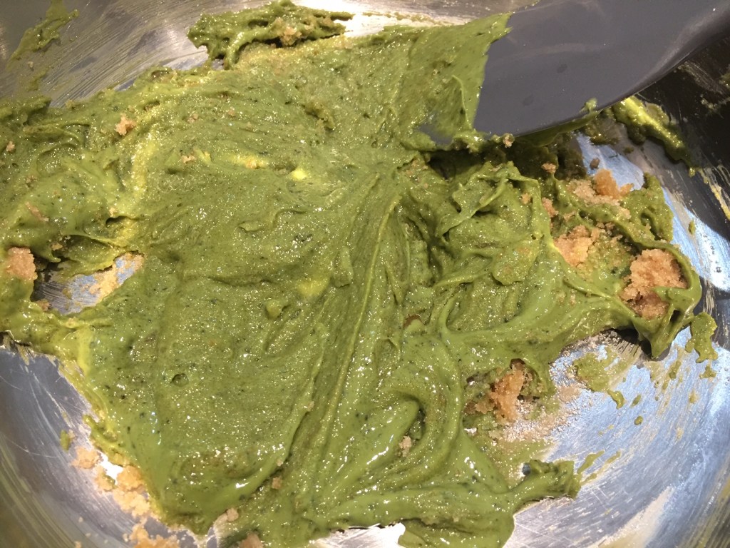 Leave butter at room temperature until very soft or microwave the butter until it is partially melted and then stir. Beat together the butter, brown sugar, white sugar, and matcha powder.