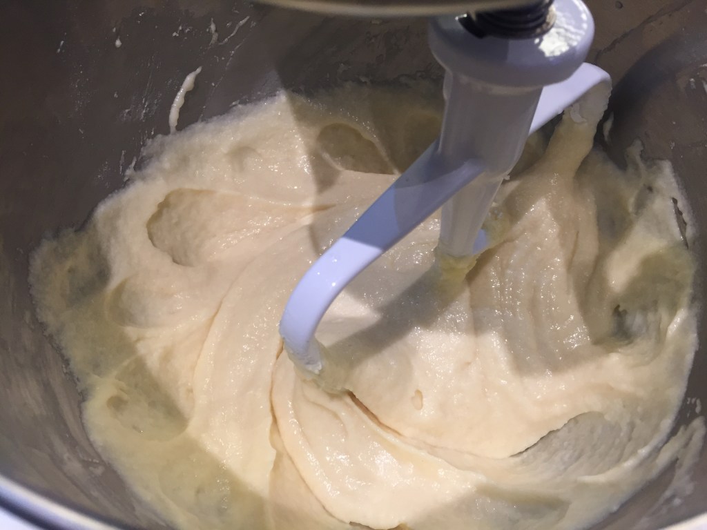 Add in half of the flour mixture and mix until well incorporated. Then add in half of the pineapple juice and continue mixing.