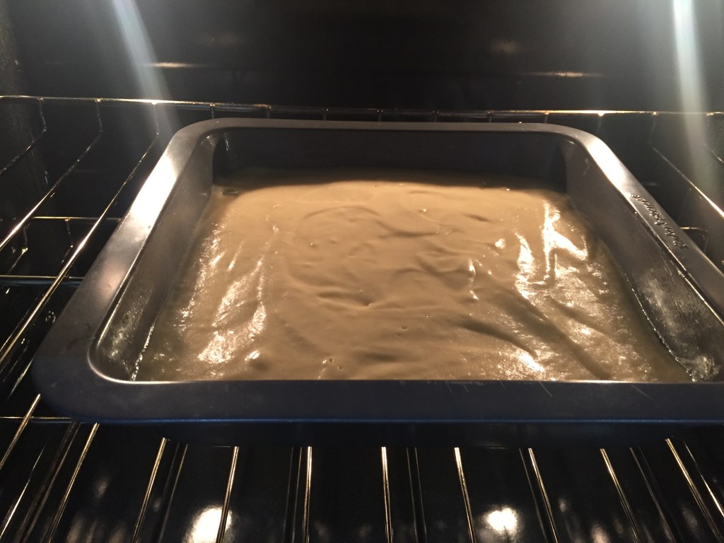 In a sauce pan, melted butter and brown sugar together, whisking continuously until the mixture is thick and smooth. Be careful not to burn the mixture. Pour into the square pan and spread evenly onto the bottom of the pan.
