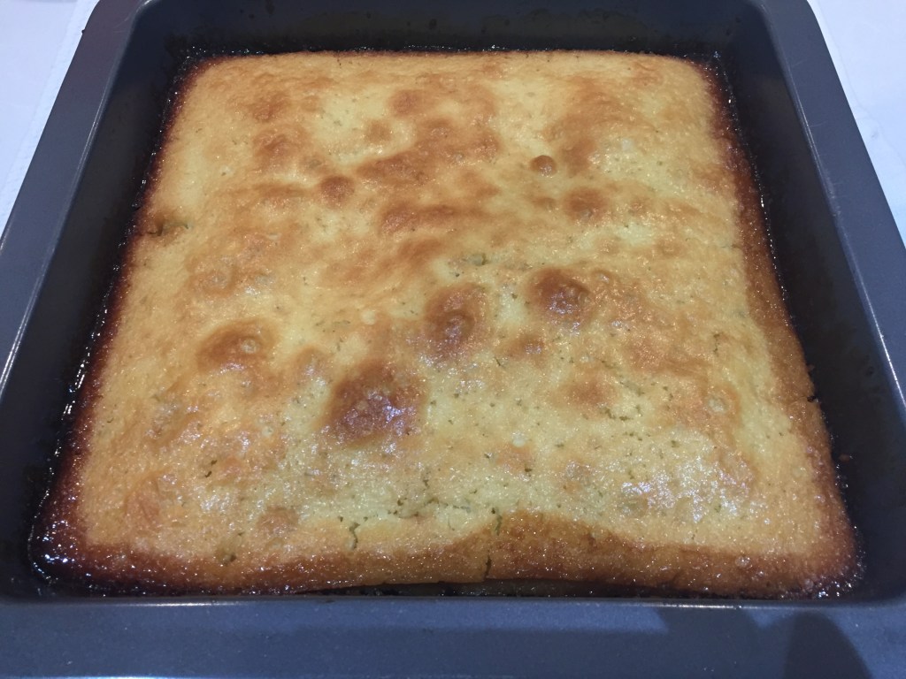 After baking, loosen the cake from the sides of the pan and allow it to cool for a few minutes. Then flip it onto a serving plate and serve.