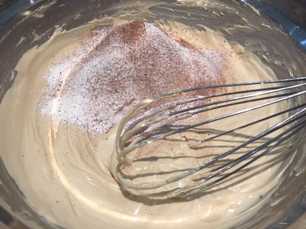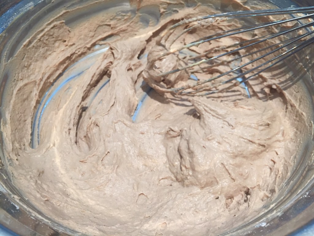 While the mixture is still warm, sift in the corn starch, flour, and cocoa powder. Whisk until well combined with no lumps.