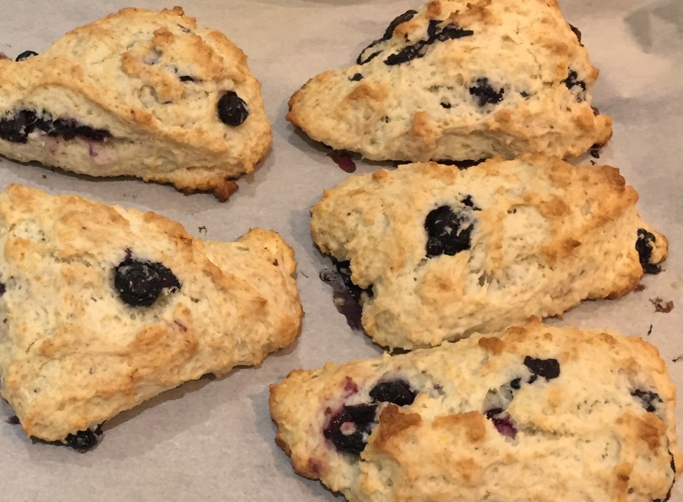 Make about 8-10. Buttery, crumbly, lightly sweetened. Ingredients: 2 cups all purpose flour1/2 cup white sugar3 tsp baking powder1 tsp salt1/2 cup butter, cold1-3 tsp lemon zest1 tbsp lemon juice1/2 - 3/4 cup milk1 cup blueberries, washed and drained Directions: Preheat oven to 400oF and line a baking sheet. Add lemon juice to the milk… Continue reading American Blueberry Lemon Scones