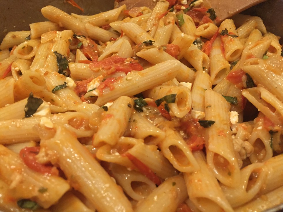 Flavours: – warm, sweet, tangy Serves 4 people. Ingredients: 3-4 bowls cherry tomatoes2-3 tbsp dried/fresh oregano4-5 cups dried penne pasta½ cup diced yellow onion2-3 cloves minced garlic¼ - ½ tsp cinnamon1 tbsp balsamic vinegarA few dashes of Tabasco sauce or cayenne pepper (optional)Salt and pepper to taste1 cup smoked gouda cheese½ cup crushed feta cheese½… Continue reading Roasted Tomato Basil Pasta